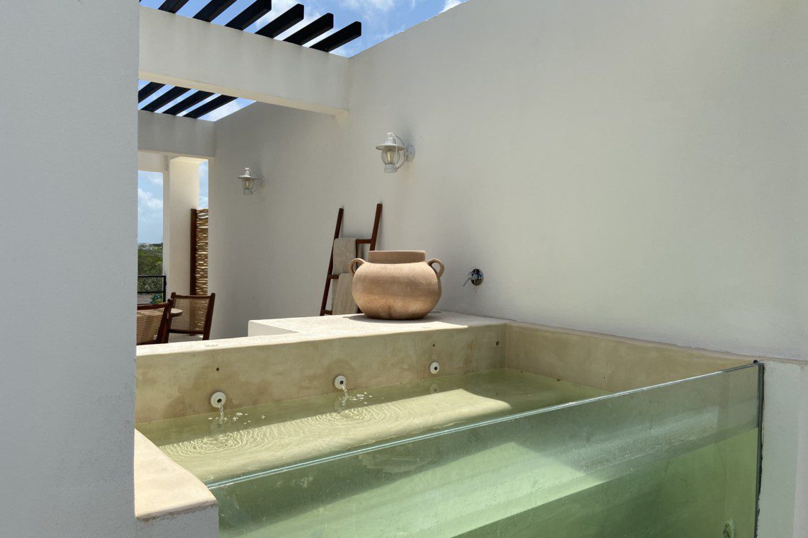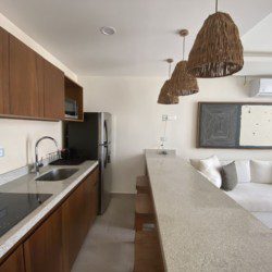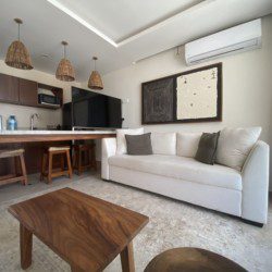 This penthouse is located at south Tulum, 3 miles from the beach, 1-2 miles from the most beautiful Cenotes, less than 1 mile from supermarkets and fruit stores. You will find incredible restaurants in the area as well as clothing stores and several activities to have fun.