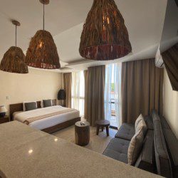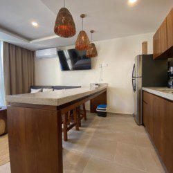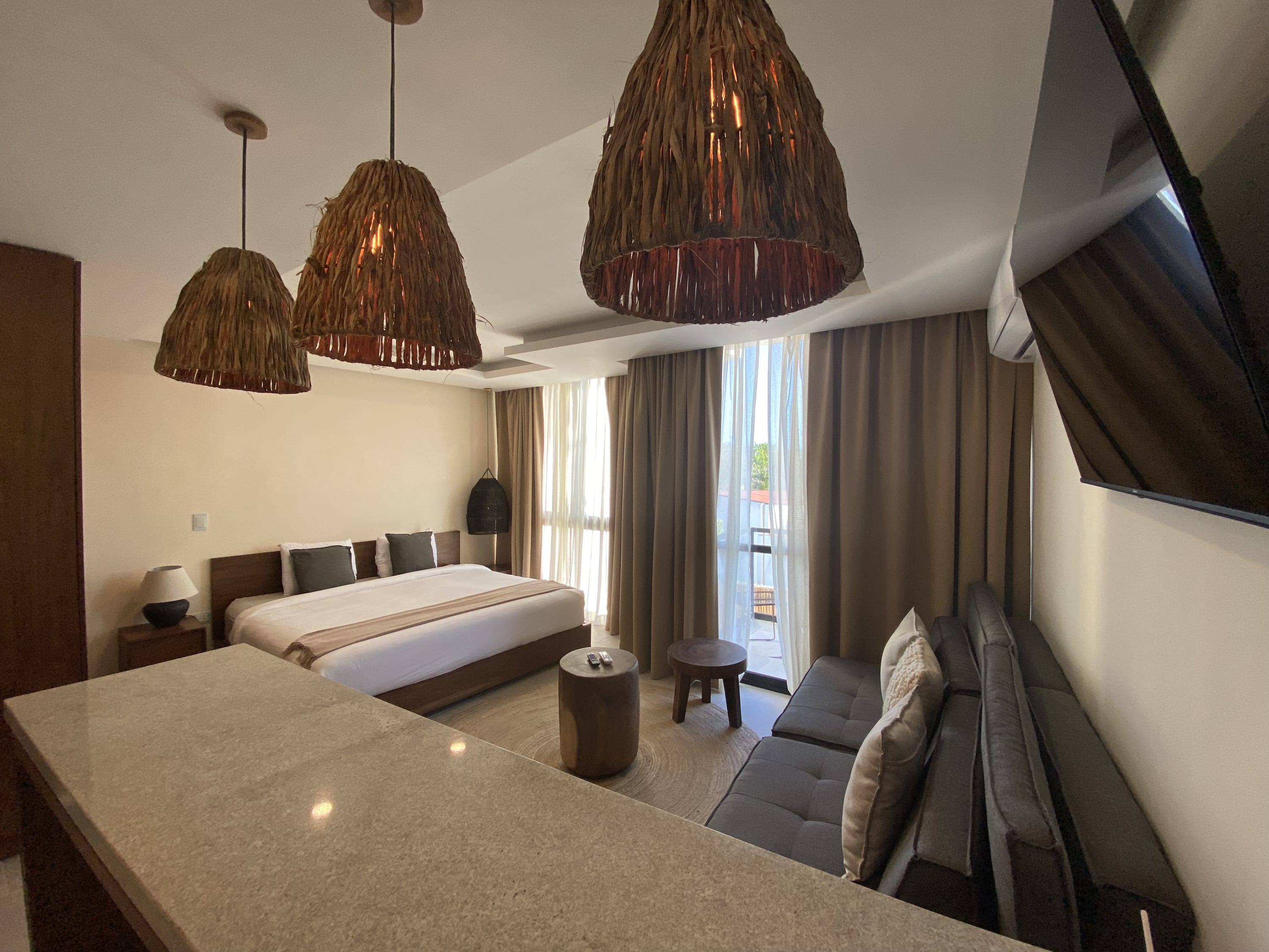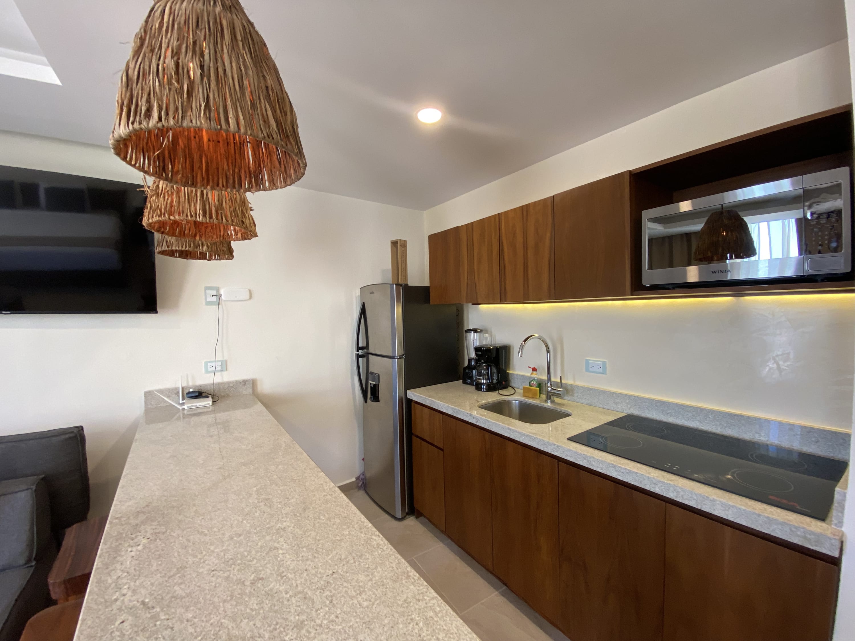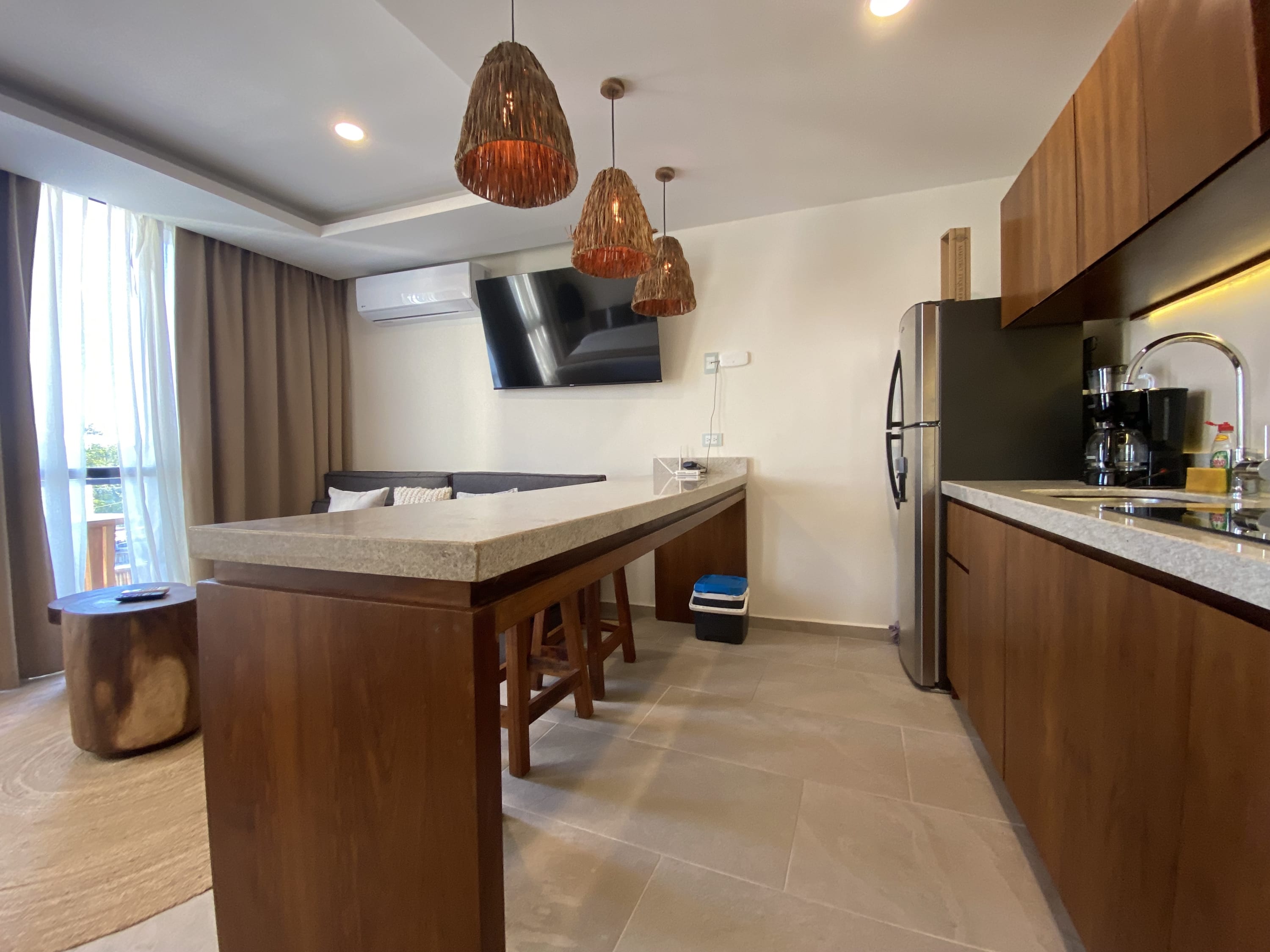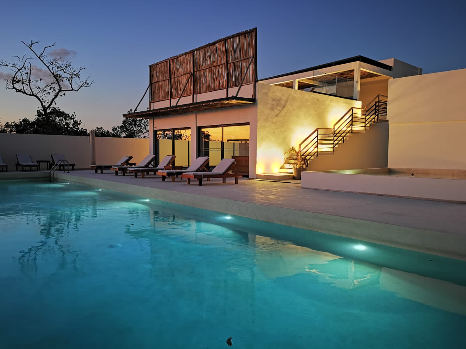This penthouse is located at south Tulum, 3 miles from the beach, 1-2 miles from the most beautiful Cenotes, less than 1 mile from supermarkets and fruit stores. You will find incredible restaurants in the area as well as clothing stores and several activities to have fun.